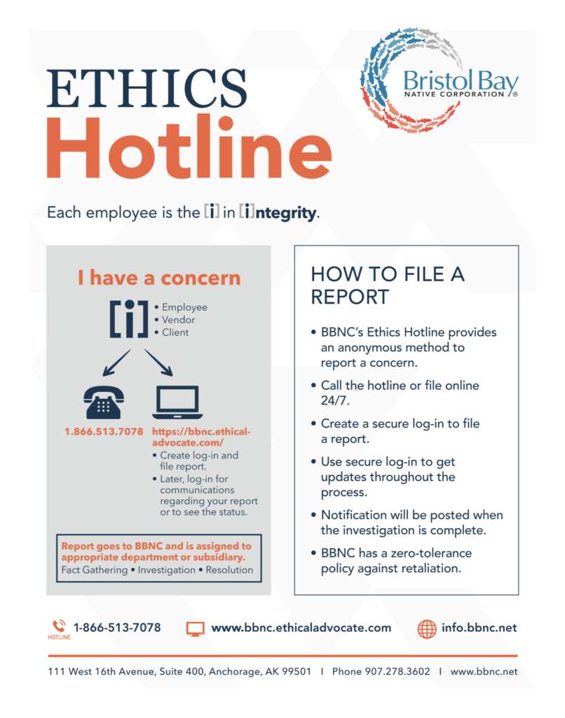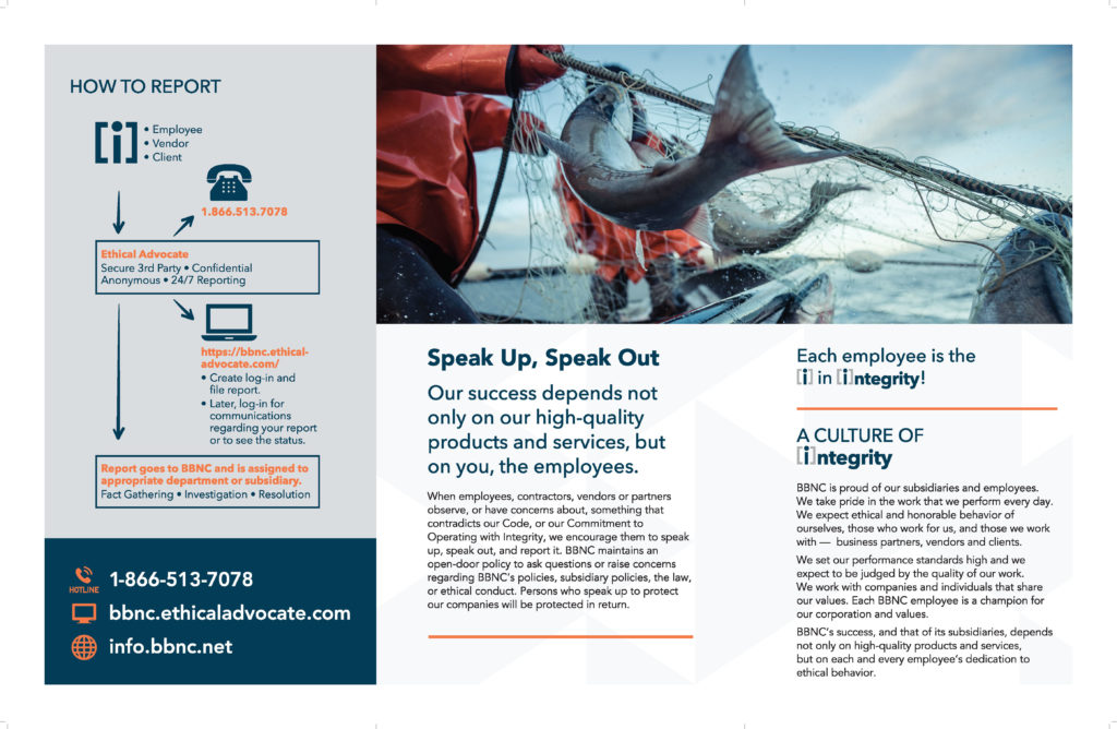 BBNC’s ethical reporting tool is Ethical Advocate (EA), a third-party platform that is available 24/7 via telephone or the internet. Learn more about the process, what to expect and how to access this secure reporting tool with our interactive EA brochure and poster, also linked below.